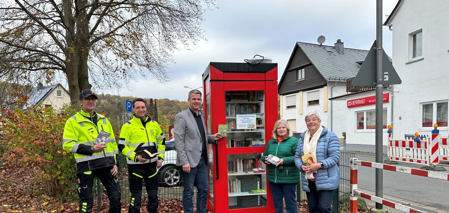 Passend zur dunklen Jahreszeit konnte die Büchertelefonzelle jetzt offiziell eröffnet werden. Die Ehrenamtlichen haben sie mit Büchern aller möglichen Genres gefüllt, sogar Kinderbücher sind dabei. Zum Pressetermin hat auch Bürgermeister Inderthal einen ausgelesenen Krimi in top Zustand mitgebracht und ihn gegen einen anderen Krimi getauscht.