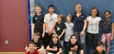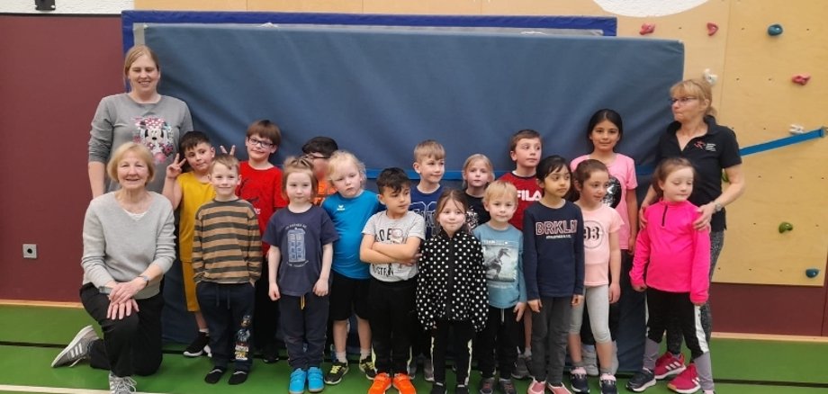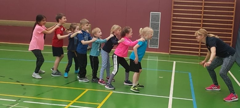 Zum Abschluss gab es noch eine Geschicklichkeitsübung mit einem Reifen. Ohne die Hände voneinander zu lassen, wanderte der Reifen durch den Kreis, indem die Kids ihren Körper durch das runde Sportgerät schlängelten.