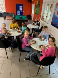 Zehn Kinder machten sich in der dritten Ferienwoche auf den Weg ins Jugendzentrum, welches sich an einem Nachmittag als Eismanufaktur entpuppte. Gemeinsam mit den beiden Stadtjugendpflegerinnen Julia Gash und Nadine Eckert, sowie Felix Drebes von der Kinder- und Jugendförderung (KiYou) wurden neben Eis auch noch Crepes hergestellt.