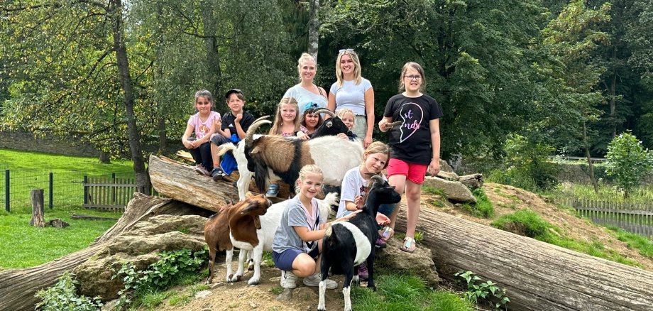 Zehn Kinder machten sich im Rahmen des Sommerferienprogramms gemeinsam mit den beiden Stadtjugendpflegerinnen Julia Gash und Nadine Eckert, sowie Felix Drebes von der Kinder- und Jugendförderung, auf den Weg in den Weilburger Tierpark. Neben Steinböcken, Wisenten und Elchen leben insgesamt 20 Tierarten im Wildpark.