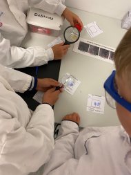So starteten die Ferienspiele der Kinder- und Jugendförderung der Stadt Solms mit einem Tagesausflug zum Chemikum Marburg. Am Dienstagmorgen trafen sich 15 Chemieinteressierte gemeinsam mit Stadtjugendpflegerin Nadine Eckert und Franziska Feth von der Kinder- und Jugendförderung (KiYou) am Wetzlarer Bahnhof und begannen zunächst ihre Reise mit dem Zug Richtung Marburg. Unter den Teilnehmenden gab es Kinder, die schon oft Zug gefahren sind und genau wussten, wo sie umsteigen mussten. Andere sind das erste Mal Zug gefahren und waren begeistert, wir schnell ein Zug fährt. In Marburg angekommen, konnte das Chemikum in wenigen Minuten zu Fuß erreicht werden. Vor Ort wurden alle von Chemiestundierenden begrüßt, haben einen Kittel und eine Schutzbrille bekommen. Und dann ging es endlich los: In drei Gruppen bekamen die kleinen Kriminalbeamt*innen jeweils ein fiktives Verbrechen zugeteilt. Mit Hilfe der Beweise von den Tatorten, mussten die Täter*innen schnellstmöglich gefasst werden. Dafür mussten die Kinder in einem echten Chemielabor beispielsweise Finderabdrücke vergleichen, Blutspuren und Bodenproben analysieren oder eine Geheimschrift entziffern. Für die Tests benötigten sie unterschiedlichste Materialien. Die Faserspuren ließen sich nur mit Hilfe eines Mikroskops untersuchen, für die Bodenproben wurden Reagenzgläser, sowie Ammoniumthiocyanat-Lösung und Silbernitrat-Lösung benötigt und bei dem fiktiven „Drogen“-Test kam sogar der Bunsenbrenner zum Einsatz. Nachdem alle Beweise untersucht worden waren, konnten diese mit den Tatverdächtigen abgeglichen und so schließlich alle Täter*innen überführt werden.
