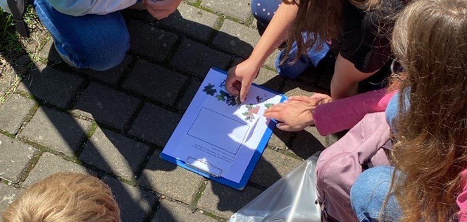 Bereits um das Jugendzentrum herum, gab es die ersten Hinweise zu entdecken, die den Teilnehmenden den Weg vorgaben. Insgesamt neun Hinweise mussten gefunden werden. Dabei entpuppten sich die Hinweise als kleine Rätsel, die gelöst werden mussten, um den weiteren Weg bis zum Schatz zu finden. So haben die Kinder zerschnittene Wörter in Sätze zusammengefügt, ein Puzzle zusammengesetzt und Rechenaufgaben gelöst. Der Weg begann am Jugendzentrum, führte über den Mühlweg bis zum Bachtrompeter, an den Gärten vorbei zum Gemeindehaus bis es schließlich in Richtung Gesamtschule ging. Auf dem Schulhof fanden sie den letzten Hinweis und waren dem Schatz schon ganz nah. Nach einer kurzen Suche unter dem Klettergerüst und hinter den Bäumen, fanden sie die lila Schatzkiste in einer Hecke. Belohnt wurden die Detektive mit Schokolade und Murmeln. Natürlich durfte auch eine kleine Urkunde nicht fehlen. „Wir sind heute so viel gelaufen, dabei war der Schatz doch eigentlich von Anfang an ganz in unserer Nähe“, sagte eine Teilnehmerin. „Da wollte es euch die Schatzmeisterin wohl nicht so einfach machen“, lachte Nadine Eckert.