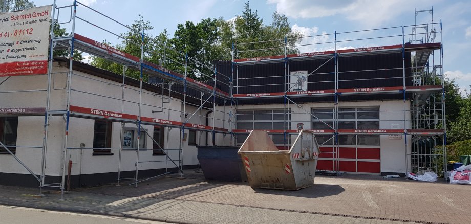 Die Sanierung und Aufstockung des Feuerwehrhauses der FFW Oberndorf hat begonnen. Das Gebäude aus den 50er Jahren, welches rundherum von Wohnhäusern gesäumt ist und hinter dem der Solmsbach entlang fließt, ist schwer in die Jahre gekommen und kann den aktuellen Anforderungen und Sicherheitsbestimmungen nicht mehr gerecht werden. Nun wird Abhilfe geschaffen und das Gebäude aufgestockt, da ein Anbau aufgrund der Lage nicht möglich ist. Die Räumlichkeiten innerhalb des Gebäudes werden dadurch umverteilt und teilweise vergrößert, das Dach neu gedeckt und eine neue Heizungsanlage eingebaut. Die Bereitstellung einer neuen Jugendumkleide, eines größeren Schulungsraumes, sowie die Verbreiterung der Tore der Fahrzeughalle bringen die erforderlichen Verbesserungen der Standards und Sicherheitsbestimmungen. Die Fertigstellung ist für Ende des Jahres geplant, idealerweise vor Beginn der Frostperiode.