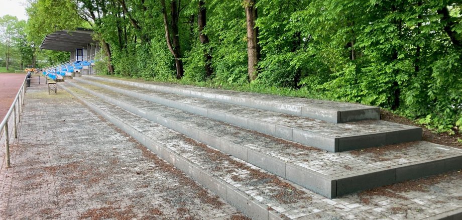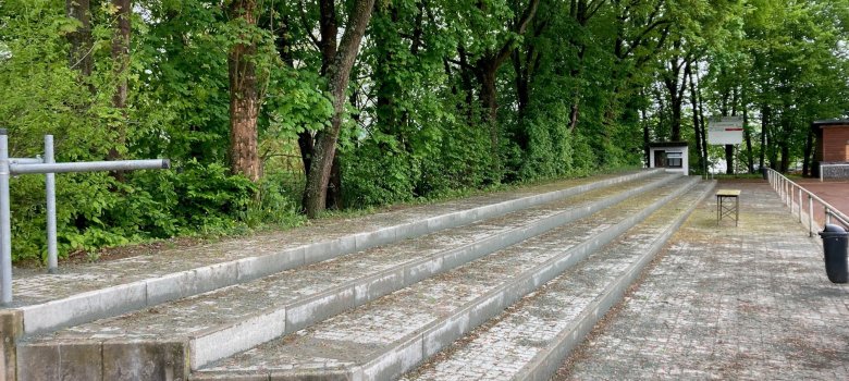 Der Zahn der Zeit hat seine Spuren hinterlassen im Erich-Mohr-Stadion. Wurzeln waren im Laufe der Jahre in die alte Stehtribüne eingedrungen, hatten dadurch die Oberfläche hochgedrückt und wellig gemacht und dadurch für Unfallgefahr gesorgt. Auch war die alte Stehtribüne nicht mehr so schön anzusehen.