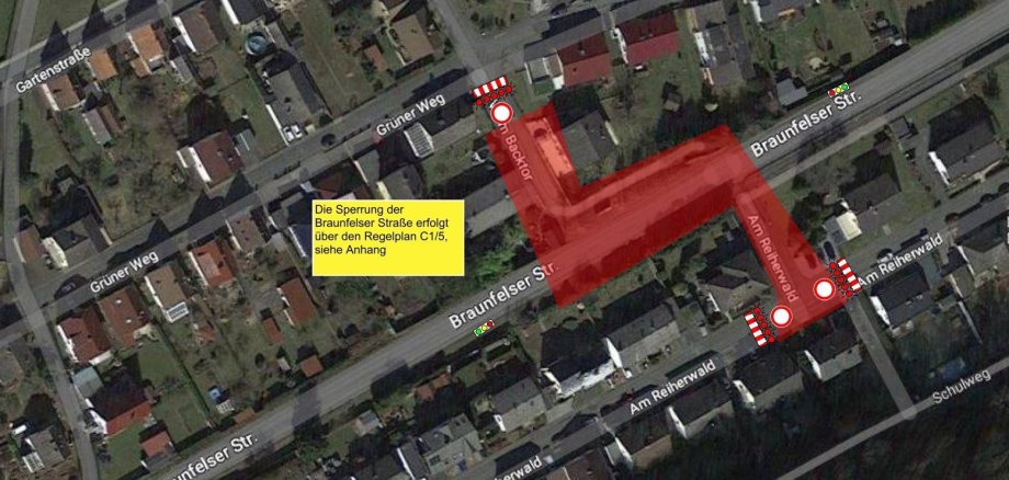 Aufgrund der Erneuerung der Trinkwasserleitung zwischen den Straßen „Am Reiherwald“ und „Vorm Backtor“, ist ab 02.05.2023 eine halbseitige Sperrung der Braunfelser Straße in Richtung Steindorf notwendig, da die neu geplante Leitung läuft entlang der Braunfelser Straße läuft. Der Verkehr wird mittels einer Ampelanlage für den Zeitraum der Bauarbeiten geregelt.