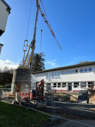 Ende September haben mit dem Ausschachten die Vorarbeiten für den Anbau in Niederbiel begonnen. Die Rohbaufirma hat ihre Arbeit Ende Oktober begonnen. Die Arbeiten sollen voraussichtlich Ende 2024 abgeschlossen sein. Es entstehen Kosten von ca. 2,2 Mio Euro.