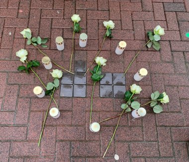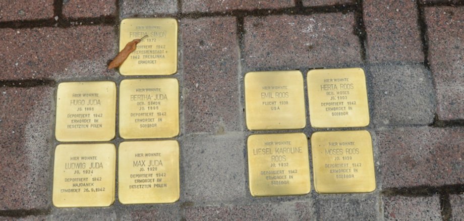 In Gedenken an die Reichspogromnacht vom 9. November 1938 fand heute die inzwischen 5. Mahnwache in Burgsolms an den sogenannten Stolpersteinen in der Solmsbachstraße statt. Die Stolpersteine, die vor dem Haus mit der Nr. 14 liegen, sollen an die beiden jüdischen Familien JUDA und ROOS erinnern, die damals in diesem Haus gelebt haben und den Nationalsozialisten zum Opfer gefallen sind.