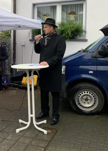 Bürgermeister Inderthal erinnerte in seiner Begrüßungsrede an diese Familien, zu deren Gedenken die Stolpersteine verlegt wurden. Die Kinder der Familie Juda waren in etwa im Alter der anwesenden Schülerinnen und Schüler.