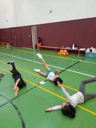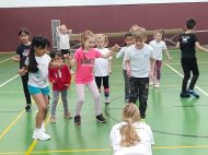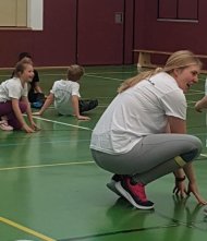 Zunächst empfing die Sport-Coachin - und ihr Helferteam - Kinder zwischen sechs und acht Jahren zu Spielen. Nach der individuellen bewegten Begrüßung ging es musikalisch mit dem „Körperteileblues“ weiter, bevor das Fangspiel „Zitronenmännchen“ erklärt wurde. Es fand sofort Gefallen und mit dem eigenartigen Wurfobjekt flitzten die Kids durch die Halle.