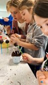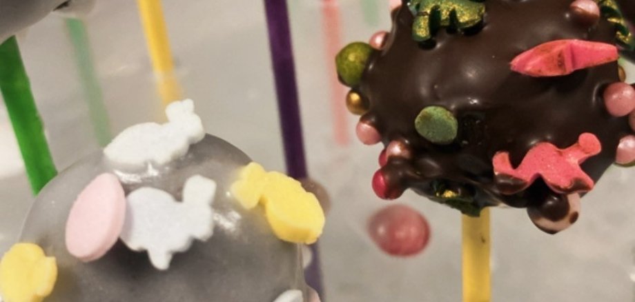 Nach einer kurzen Vorstellungsrunde und einer Einweisung, wie man hygienisch und sicher in der Küche arbeitet, wurde zunächst noch ein Schokoladenkuchen gebacken. Das konnten schon einige richtig gut, weil sie bereits Zuhause viel backen. Um so viele Cake Pops wie möglich machen zu können, hatte Julia Gash bereits am Vortag zwei weitere Kuchen gebacken. Damit die Kuchenkugeln schließlich geformt werden können und auch gut auf den kleinen Stielen hielten, wurde der zerbröselte Kuchen mit einer Mischung aus Puderzucker und Frischkäse vermengt. Dann hieß es ran ans Werk - Kugeln formen. Ganze 180 Kugeln sind aus den drei Kuchen entstanden, welche anschließend kurz in die Gefriertruhe gelegt werden mussten, damit sie anhärten. In der Zwischenzeit rückten die Teilnehmenden Gruppentische im Jugendzentrum zusammen, stellten Zuckerguss her und holten ihre mitgebrachten bunten Zuckerstreusel aus den Taschen heraus. Schokolade wurde noch geschmolzen und dann konnte es auch schon mit dem Dekorieren los gehen. Der ein oder andere Cake Pop durfte natürlich auch schon zwischendurch vernascht werden. Die Restlichen wurden anschließend mit nach Hause genommen und waren sicherlich ein leckerer Snack für die ganze Familie.