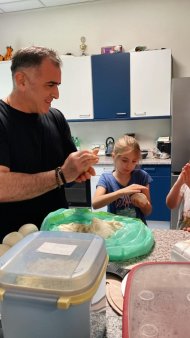 Einmal einem echten Koch auf die Finger schauen. Das erfüllte sich für 14 Ferienkinder im Jugendzentrum. Gemeinsam mit den beiden Stadtjugendpflegerinnen Julia Gash und Nadine Eckert, sowie Felix Drebes von der Kinder- und Jugendförderung, hießen die Kinder Toni Di Leonardo im heimischen Jugendzentrum herzliche willkommen. Der Koch aus dem Hörnsheimer Eck in Wetzlar bot den Teilnehmenden einen echten Einblick in die Welt der italienischen Pizza. Nach einer kurzen Vorstellungsrunde begann die eigentliche Arbeit direkt in der Küche. „Zu aller erst müsst ihr natürlich auf die Hygiene beim Kochen achten. Zusammengebundene Haare und saubere Hände sind das wichtigste in der Küche!“, erklärt Toni. Zunächst wurde der Hefeteig aus Mehl, Wasser und Hefe hergestellt. Der Teig muss dann erst einige Minuten im warmen ruhen, damit er aufgehen kann. Anschließend werden aus dem Teig runde Teigkugeln geformt, die alle ungefähr 220 Gramm wiegen. Das konnte Toni schon nach Gefühl, aber auch die Kinder durften sich daran versuchen, gleichmäßige Kugeln herzustellen. Damit aus den Teigkugeln nun Pizzen entstehen können, werden diese ausgerollt und mit einer selbstgemachten Tomatensauce bestrichen. Dann konnten sich alle Kinder ihren Belag aussuchen und die Rohlinge wurden dann in mobile Pizzaöfen geschoben. „Die werden bis zu 500 Grad heiß und so ist deine Pizza schon nach vier Minuten fertig“, so Di Leonardo. Nacheinander konnten alle ihre ofenfrischen Pizzen essen. Als Überraschung hat Toni extra noch am Tag vorher Tiramisu für alle hergestellt. „Ein echter italienischer Nachtisch, darf natürlich nicht fehlen“, lacht er.