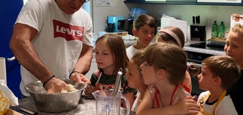 In der fünften Ferienwoche begrüßten 15 Kinder, sowie Julia Gash und Nadine Eckert von der Kinder- und Jugendförderung, Toni DiLeonardo im Jugendzentrum zum gemeinsamen Pizza backen.