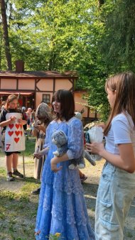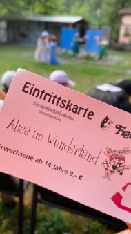 Zu einem spannenden Ausflug zog es die Solmser Ferienkinder im Rahmen des Solmser Ferienprogramms zur Freilichtbühne des benachbarten Braunfelser Stadtteils Bonbaden, wo sie mit „Alice im Wunderland“ ein abwechslungsreiches Abenteuer erlebten. 10 Kinder begleiteten die beiden Stadtjugendpflegerinnen Julia Gash und Nadine Eckert und verfolgten ganz gespannt die Geschichte rund um „Alice im Wunderland“.