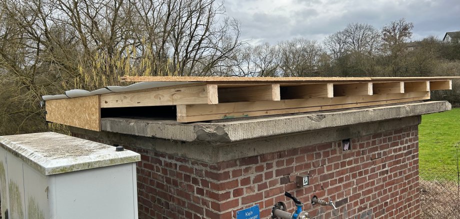 Das Dach des Pumpenhäuschen Knebelsborn in Niederbiel ist marode, daher wird aktuell die Dacheindeckung abgerissen und soll durch ein Pultdach ersetzt werden. Die Baumaßnahmen laufen aktuell noch und werden von der Firma Rödel aus Solms ausgeführt. Mit dieser Maßnahme soll die Wasserentnahmestelle dauerhaft in ihrer Funktion gesichert und erhalten werden.