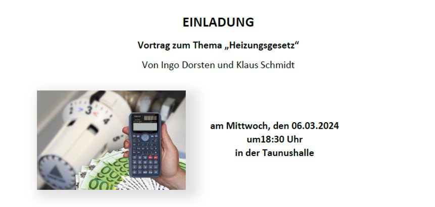 Welche das sind und wann sie gelten soll in einem Vortrag des Kreis-Klimaschutzmanagers Ingo Dorsten und des Innungsobermeisters der Wetzlarer Heizungsinnung, Klaus Schmidt vorgestellt werden. Dabei wird ein Schwerpunkt auf die Frage gelegt welche Kriterien bei der Wahl des zukünftigen Heizsystems zu beachten sind.