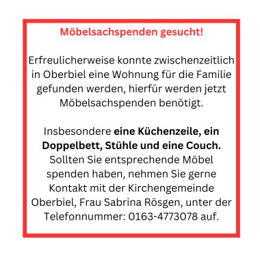 Spendenaufruf für Oberbieler Brandopfer - Möbelspende