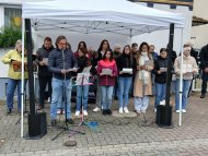 Die Schülerinnen der Geschichts-AG von Roger Haberditzl und David Schüßler (Mariella Göbel, Anna-Sophie Grünhagen, Sonja Lehle, Paulina Faust, Leoni Weiß, Lilly Morlang, Anna Keller, Hannah Schäfer und Madleine Knoll) vermittelten mittels einer szenischen Lesung aus Tagebüchern von jüdischen Kindern und Jugendlichen einen Eindruck aus dem Leben während des Holocaust.