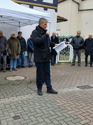 Dies betonte auch Bürgermeister Frank Inderthal in seiner Ansprache. Er erzählte von den beiden Familien Juda und Roos, die damals in der Solmsbachstraße 14 gelebt haben, und bis auf Emil Roos, dem die Flucht gelang, ermordet wurden. Ludwig und Max Juda waren damals 13 und 15 Jahre alt, ähnlich dem Alter der anwesenden Schülerinnen und Schüler.