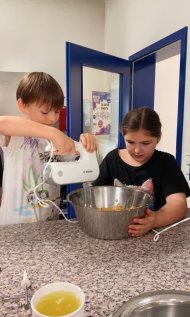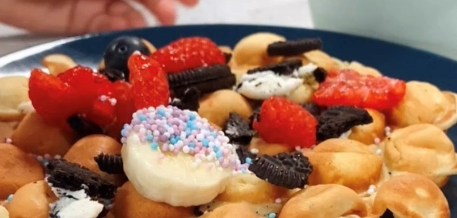 Ein besonderes Highlight war das Backen von Bubble Waffeln. Unter Anleitung von Nadine Eckert und Honorarkraft André Fierus, durften die Kinder ihre eigenen Waffeln kreieren und mit verschiedenen Toppings wie frischen Früchten, Schokolade und Sahne verzieren. Beim gemeinsamen Essen der Leckereien erfüllte der süße Duft der frisch gebackenen Waffeln den Raum und sorgte für strahlende Gesichter.