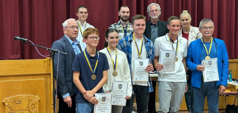 Seinen besonderen Dank richtete er jedoch nicht nur an die Sportlerinnen und Sportler, sondern auch an die Trainerinnen und Trainer, Eltern sowie den zahlreichen Ehrenamtlichen in den Vereinen. Nur mit der Unterstützung dieser Personen kann ein Sportler seine Spitzenleistungen abrufen. Für die sportlichen Leistungen erhielten die Sportler, neben einer Urkunde eine Medaille, die Erster Stadtrat Jörg Leidecker im Namen des Magistrates der Stadt Solms überreichte.