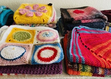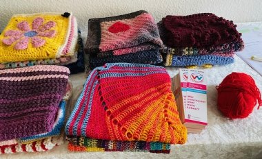 Die Aktion ist als Benefiz-Veranstaltung geplant, die Besucher und Besucherinnen können die bunten, handgearbeiteten Decken gegen eine Spende mit nach Hause nehmen.