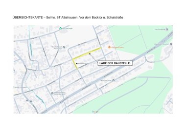 Im Rahmen dieser Baumaßnahme wird die Trinkwasserleitung innerhalb der Schulstraße im Abschnitt zwischen den Einmündungen „Vor dem Backtor“ sowie „Flutgrabenstraße“ im Stadtteil Albshausen erneuert. Außerdem innerhalb der Straße „Vor dem Backtor“ im Abschnitt zwischen den Einmündungen „Gartenstraße“ und „Schulstraße“.