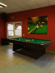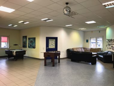 Außerdem finden sich einige Möglichkeiten für den Zeitvertreib. Neben einem großen Tanzspiegel, gibt es außerdem einem großen Billardtisch, zwei Tischkicker und einen Airhockey. Besonders gemütlich ist es immer wieder in der Sofaecke in der gechillt, gequatscht und gespielt werden kann.