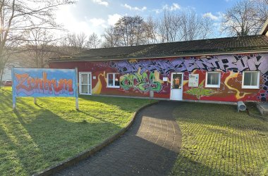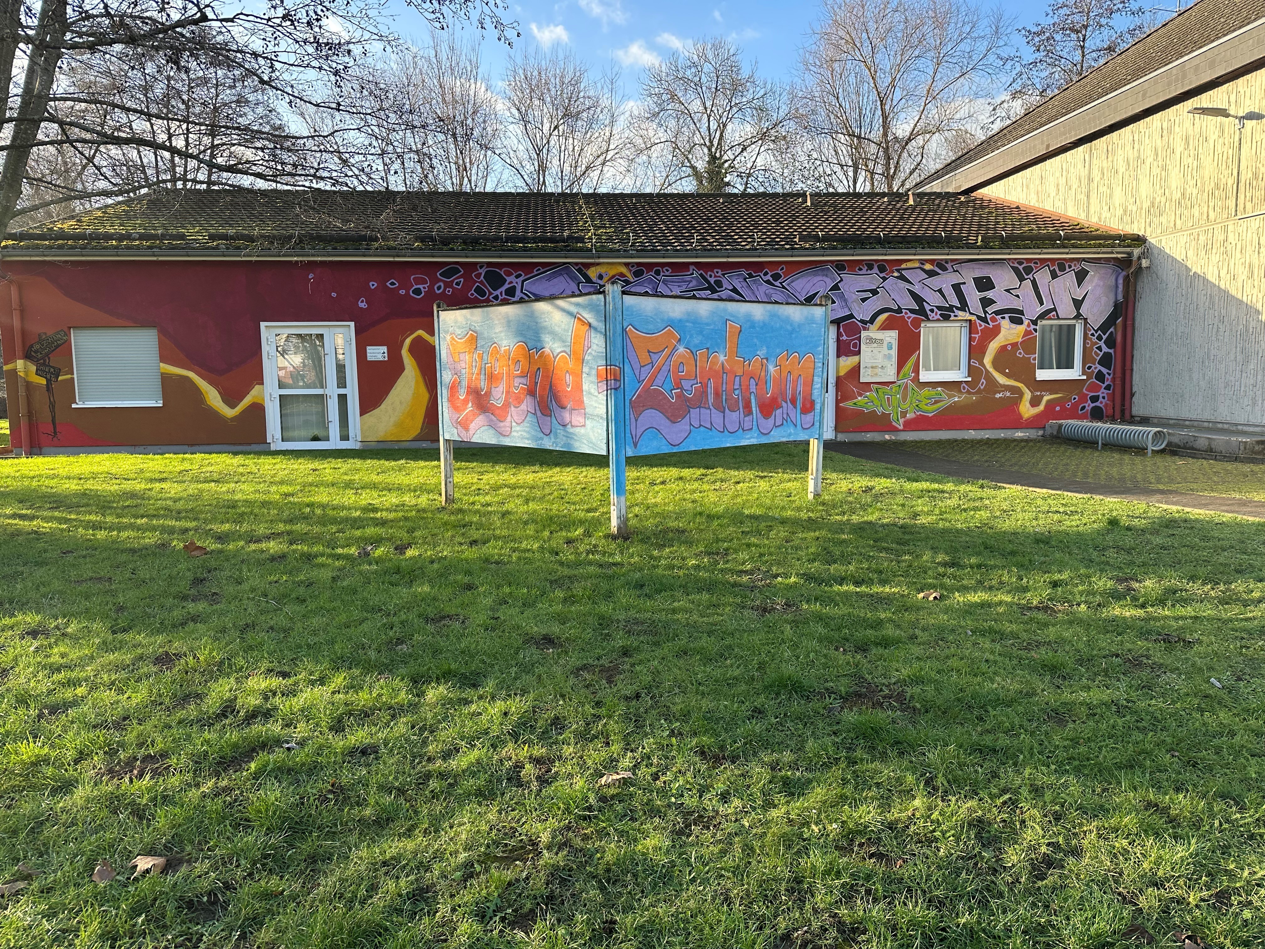 Das Jugendzentrum der Stadt Solms findet sich seit 2001 in der Stadionstraße mit direktem Zugang zur Solmsbach. Es ist durch seine Graffitkunst kaum zu übersehen. Auf der Außenfläche ist die Nutzung der festinstallierten Tischtennisplatte jeder Zeit möglich. Und auch der überdachte Pavillon hinter dem Haus kann ein guter Rückzugsort sein. Während der Öffnungszeiten wird dieser vor allem im Sommer gerne genutzt. Aber auch während Vermietungen ist der Platz sehr gut geeignet zum Grillen und Zusammensitzen.