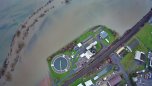 A flowing stream of blue water. Splash of water close-up. Frozen water drop photographed at high speed.Slow dripping of liquid with air bubbles. Nature backgrounds or Wallpaper.Frozen liquid splashes